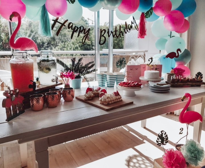 J’ai donc décidé d’accentuer le bleu et que les flamants roses seraient la seule touche rose! (Bon, autant vous dire que je ne m’y suis pas tenue 🙂 )