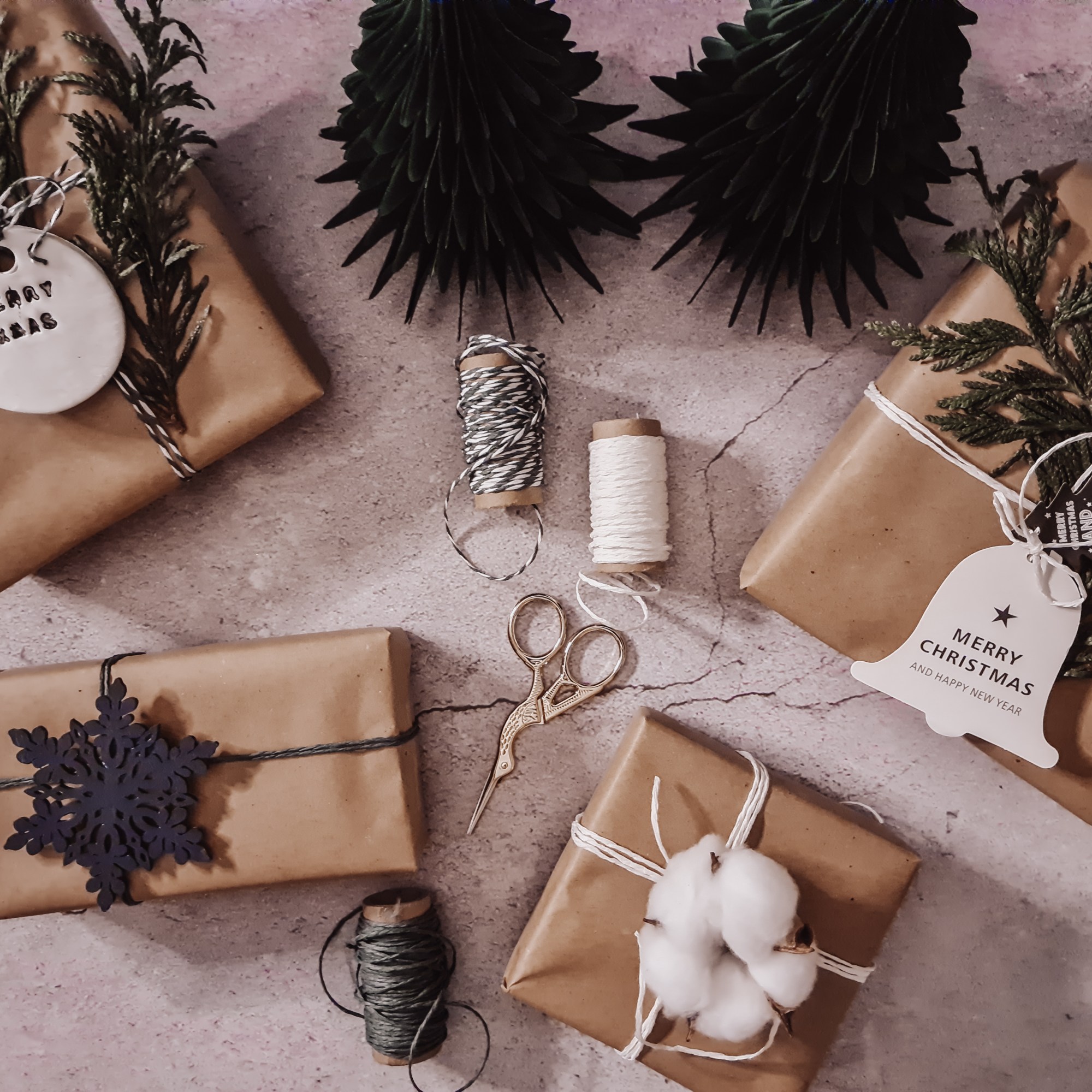 Commencez par bien choisir votre papier cadeau, de préférence en papier car plus facile à maîtriser. Pour ma part, je prends quasi toujours du papier kraft pour pouvoir le décorer selon mes envies tout en restant élégant.